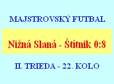 Výsledky 22. kola II. triedy: Gem. Hôrka B - Kružná 2:0, Plešivec – Jovice 6:1, Honce – Kečovo 9:1, Nižná Slaná – Štítnik 0:8, Krh. Dlhá Lúka B – Ml. Brzotín 7:1.
