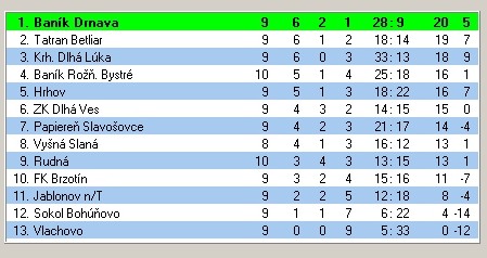 PRIEBEŽNÁ TABUĽKA I. TRIEDY PO 10. KOLE: