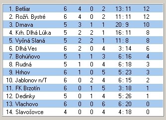 TABUĽKA I. TRIEDY ZO ZÁPASOV HRANÝCH VONKU PO 11. KOLE:
