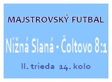 Nižná Slaná – Čoltovo 8:1 (3:0). Góly domácich: Die 4, Slovák 2, Cangár a Gelda po 1. Rozhodcovia: Raši, Gallo, A. Farkaš, Delegát: Šmelko. Diváci: 30. V druhom domácom zápase v jarnej časti II. triedy ObFZ Rožňava privítala Nižná Slaná desiate mužstvo tabuľky, Čoltovo. Domáci tréner mal po dlhom čase k dispozícii piatich náhradníkov, zo zdravotných dôvodov chýbal Leštach. Posilnenie kádra, postavenie v tabuľke, či nedávne vzájomné zápasy hovorili v prospech domáceho mužstva. Hostia pricestovali len jedenásti, dopredu sa však nevzdávali.
