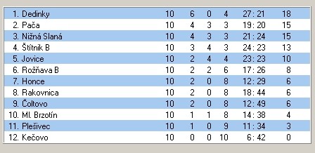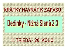 Dedinky – Nižná Slaná 2:3 (1:1). Góly za Dedinky: M. Chabada, P. Revay.