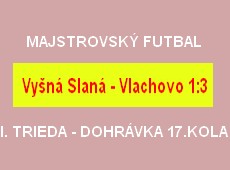 V dohrávke 17. kola I. triedy medzi mužstvami Vyšná Slaná a Vlachovo došlo k veľkému prekvapeniu, keď hostia, ak sa chceli zachrániť v 1. triede, museli vyhrať. Po výbornom výkone to aj dokázali a zachránili sa. Domáci neradi púšťajú doma body, ale na omladinu z Vlachova nemali. Hostia, vedomí si svojho postavenia, zaskočili skúsených a starších hráčov domáceho mužstva ofenzívnym futbalom až do konca stretnutia. Hlavne obrana domácich nedokázala ubrániť mladých útočníkov,