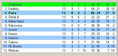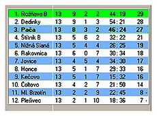 PRIEBEŽNÁ TABUĽKA II. TRIEDY PO 13. KOLE: