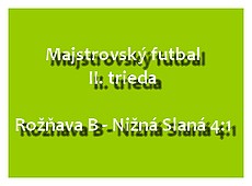 Rožňava B – Nižná Slaná 4:1 (1:0). Gól hostí: Leštach. Rozhodcovia: A. Farkaš, J. Gyenes, T. Gyenes, Delegát zápasu: Székely. Diváci: 45. Zostava hostí: Krnáč - Karas, Soják, D. Hajči, Schwarz – O. Junger, G. Keršák, Die, Prónai – Cangár, Valko. Striedania: 65. min. Valko (Leštach), 80. min. O. Junger (Tomi). Náhradníci: J. Tomi, J. Leštach, Š. Tomášik (NB).