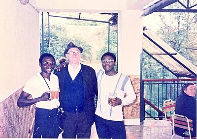 Prikladám fotografiu z augusta 1987. Na fotografii vpravo je Bernard Kassense (v bielo-modrom tričku), Peter Fabián – 77 ročný (môj otec) a nigérijský novinár Peter Mwura.