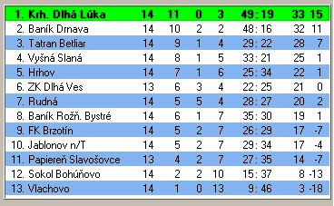 Hrhov - Rožňavské Bystré 3:2 (1:1). Začiatok zápasu úvodného kola jarnej časti I. triedy lepšie začali Bystrania. Už v 3. minúte domáci brankár likvidoval nájazd J. Urbana ml.. V 13. minúte po kolmej prihrávke Jara Galla sa v takmer rovnakej situácii ako pred tým už J. Urban ml.  nezmýlil a ponad vybiehajúceho brankára poslal loptu do brány Hrhova. 0:1 Bystrania mali naďalej miernu prevahu, no domácim vyšla štandardka v 25. minúte slabo odvrátenú loptu zo 16-ky Bystrého domáci hráč z 20 metrov krížnou strelou poslal za chrbát Koncza. 1:1 Bystrania mohli pridať druhý gól, no hlavičku J. Urbana ml. Domáci brankár kryl.