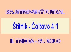 Výsledky 21. kola II. triedy: Štítnik – Čoltovo 5:1, Kečovo – Nižná Slaná 2:2, Jovice – Honce 0:5, Kružná – Plešivec 2:3, Pača – Gem. Hôrka B 2:2.