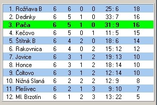 Mladosť Brzotín - Baník Rakovnica 1:3. Obidve mužstvá II. triedy mali v 12. kole súťaže sťažené podmienky, nakoľko sa hral futbal v studenom počasí a ešte hru sťažoval silný vietor. Na hráčov Mladosti bolo vidno, že mali dosť veľký herný výpadok, lebo nehrali ani súťažné a ani priateľské zápasy. Hostia umne držali domácich futbalistov ďaleko od vlastného pokutového územia. V 6. min. sa hostia ujali vedenia, keď brankár domácich vyrazil po skrumáži loptu presne na nohu Murzu z mužstva Rakovnice a ten už vedel, kde treba loptu zasunúť. 0:1. V 14. min. domáci Lazok po chybe obrany hostí vyrovnal. 1:1. V druhom polčase domáci sa dostali do tempa, ale svoje šance nevyužili. Aj zásluhou veterána v bránke hostí Mátaša. Hostia krásnymi brejkami Samka a Tomka stanovili výsledok na konečných 1:3. Rozhodca udelil po jednej žltej karte. Veľmi dobre rozhodoval Iglai. Asi 50 divákov ocenilo za predvedenú hru obidve mužstvá.