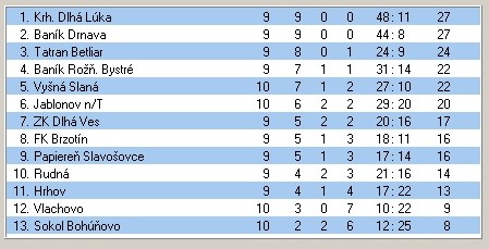 Rožňavské Bystré - Drnava 4:3 (2:1). Góly Bystrého: Minčík 3, Čapó. Po neúspešnom vystúpení v Krásnohorskej Dlhej Lúke sa museli Bystrania v 20. kole I. triedy pripraviť na ďalšieho ašpiranta na postup - Drnavu. Aj keď úvodné minúty patrili hosťom, Bystrania pohrozili v 1. minúte nebezpečnou šancou Urbana. Drnavčania úvodnú polhodinu dominovali na ihrisku v Bystrom svojou dobrou kombinačnou hrou, no gól sa im podarilo streliť len zo štandartnej situácie, keď Bulík tvrdou strelou z 25 metrov zaskočil Koncza. 0:1. Koncz však v ďalších minútach Bystranov podržal a tí odpovedali svojimi zbraňami. V 35. minúte po zlej rozohrávke Drnavčanov Urban potiahol loptu k základnej čiare a jeho
