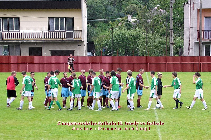 Jovice - Drnava 0:6 (0:3), góly: Mázik 3, Emödi 2, Búlik - bez kariet.