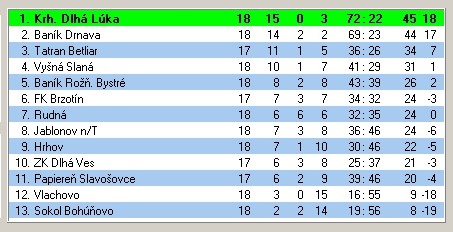 PRIEBEŽNÁ TABUĽKA I. TRIEDY PO 19. KOLE