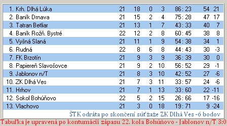 PRIEBEŽNÁ (upravená) TABUĽKA I. TRIEDY PO 23. KOLE: