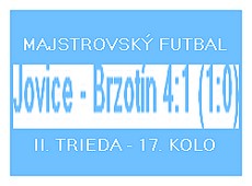 TJ Mladosť Jovice - Mladosť Brzotín 4:1 (1:0). G: Krága (11m), Rusznyák, Spišák, Lovaš – Vavrek (11m). R: Repaský, AR: Lévai, DZ: Székely, D: 50. V 17. kole OM II. triedy hostilo mužstvo Jovíc súpera z Brzotína. Hostia prišli v kompletnej zostave, čo naznačovalo, že neprišli predať svoju kožu lacno. Začiatok zápasu patril Brzotínčanom, ktorí hrali veľmi dobre pozične a pokúšali sa o kombinačnú hru. Jovičania však odolávali. Domácim sa neskôr zranil Grecmacher, a to neveštilo nič dobré. Hostia vycítili, že domáci nie sú vo svojej koži a snažili sa dosiahnuť otvárací gól, čo sa im skoro aj podarilo, ale strelu hosťujúceho hráča ešte stihol domáci brankár vyraziť. Domácim sa podarilo otvoriť