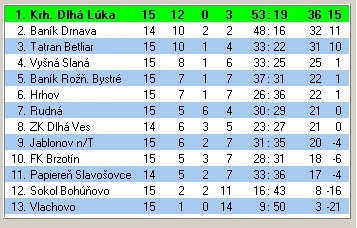 Futbalisti I. triedy mali v tomto 17. kole potvrdiť stúpajúcu úroveň futbalu. Keďže futbalisti Lipovníka štartujúci v V. lige na jar „zbalili kufre“ v tejto súťaži, susedné mužstvá mali šťastie v podobe získania niektorých jeho hráčov na hosťovanie. Ukazuje sa, že hráči posilnili tie kádre, kde majú možnosť naplno sa zapojiť do zápasov. Padlo síce v tomto kole menej gólov, ako v II. triede – len 25, ale potrebné je spomenúť vyššiu úroveň hry v tejto súťaži. Najvyšším rozdielom sa skončil zápas v Bohúňove, kde hostia zo Slavošoviec vyhrali vysoko 1:6. Zdá sa, že si hráči od Papierne vstúpili do svedomia a chcú na jar potvrdiť svoje kvality. Nasledujúce kolo im ukáže, či je tomu tak. Najslabšie mužstvo I. triedy – Vlachovo kráča od prehry k prehre a ich brankár vyberal zo svojej brány loptu súperov až 50 krát. Je to dvakrát menej ako brankár Vyšnej Slanej. Chudobný je aj výsledok strelených gólov – 9, čo je 4 krát menej ako vsietili strelci Rožňavského Bystrého – 37. Prvé miesto v tabuľke si s prehľadom drží Krásnohorská Dlhá Lúka – 36 bodov a skóre 53:19.