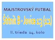 Štítnik B – Jovice 1:3 (1:1). Na v poradí tretí majstrovský zápas jarného kola II. triedy cestovalo družstvo Jovíc do Štítnika s cieľom potvrdiť skvelú jarnú formu. Začiatok zápasu veľa