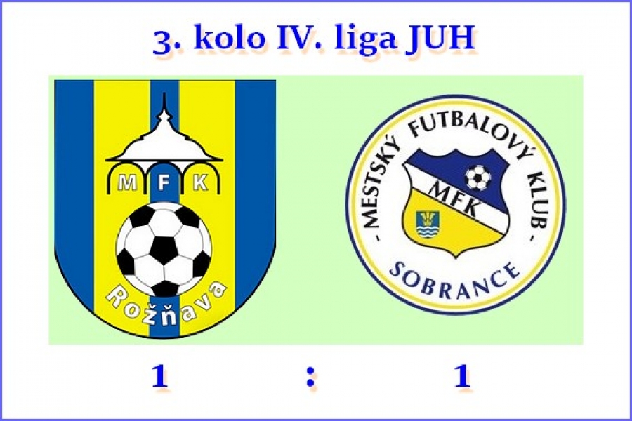 MFK Rožňava - MFK Sobrance 1:1 (0:0). M. Gere (50´) - M. Hreško (59´). ŽK: Z. Breuer (7´), L. Strelka (37´), M. Gere (68´), T. Hajdúk (73´), Š. Mišina (80´) - M. Hreško (9´), S. Kundryk (75´), R. Kostič (80´), M. Viňanský (82´), P. Ličko (86´). R: V. Paulišin - P. Karafa, I. Havrila, DS: R. Tóth. Di: 200.