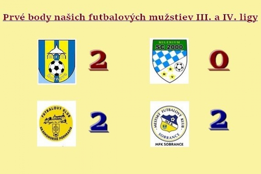 FK Krásnohorské Podhradie – MFK Sobrance 2:2 (0:2), G: L. Héger, R. Kuzma, ŽK: T. Revúcky, N. Luko, J. Piater. R: M. Maňkoš - P. Konečný, P. Havrila, DS: V. Borufka. Di: 100, Tréner: J. Balta.