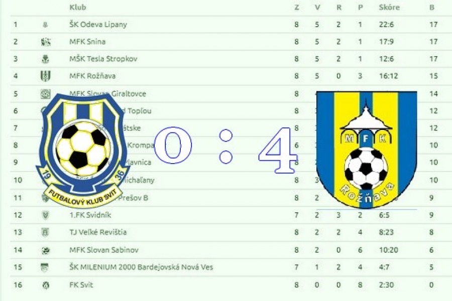 TABUĽKA III. LIGY VÝCHOD PO 8. KOLE: