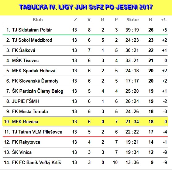Góly: 1. a 29. Faško, 34. Kožička. ŠK Partizán Čierny Balog - MFK Revúca 1:0 (1:0) MFK Revúca: Opiela - Majerčík, Urc (K), Krajňák, Antal, Gömöri, Furman, Šestina, Slovák (76. Lunter), Bystrán, Faško. MFK Revúca - JUPIE futbalová škola Mareka Hamšíka 0:5 (0:3) MFK Revúca: Opiela - Majerčík, T. Urc (K), Krajňák, Antal, Gömöri, Máté, Šestina, Slovák, Bystrán (63. Šmídt), Faško (69. Lunter). FK FC Baník Veľký Krtíš - MFK Revúca 1:2 (0:1) MFK Revúca: Opiela, Majerčík, Urc (K), Krajňák, Antal, Gömöri, Šmídt, Šestina, Slovák, Bystrán, Faško. FK Rakytovce – MFK Revúca 4:0 (2:0)Góly: 17. Pavlík, 35. Kapusta, 72. Kapusta (11 |