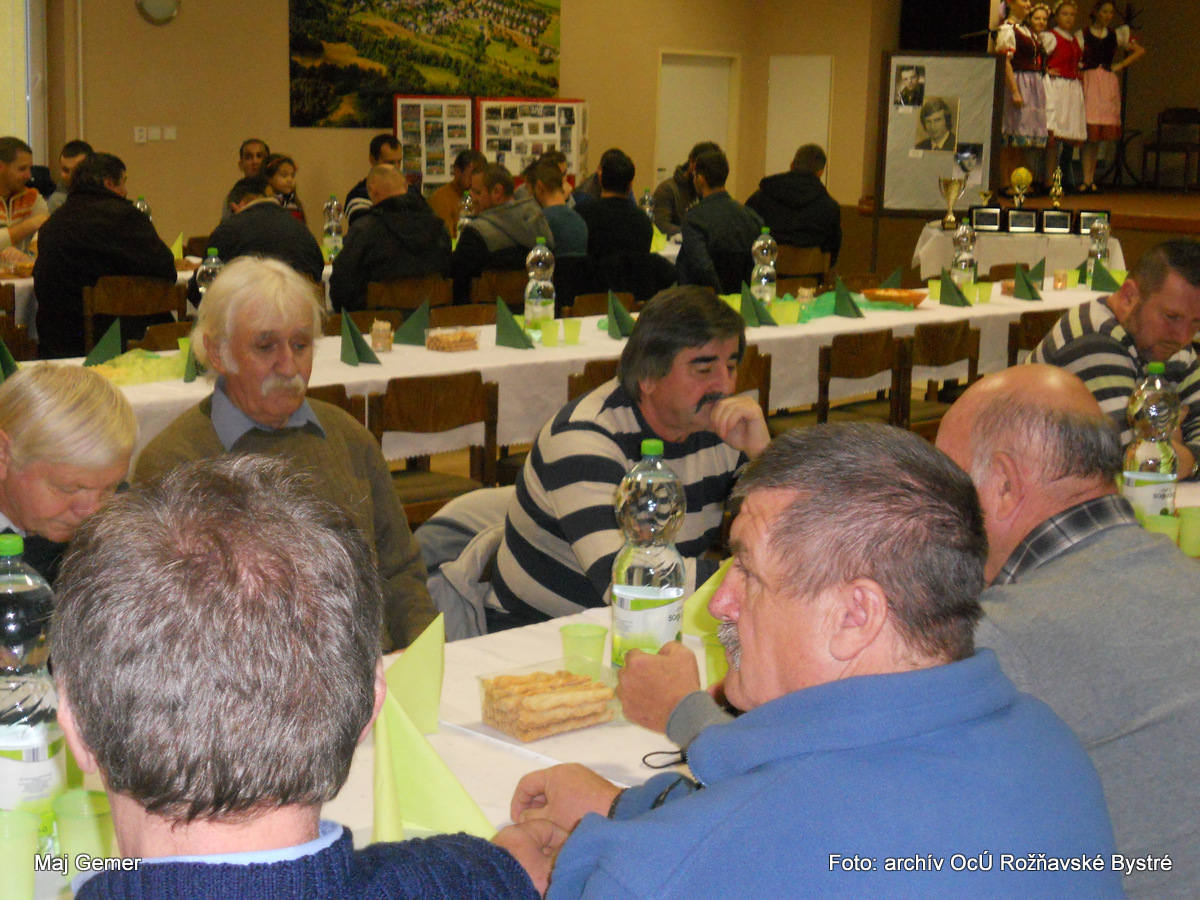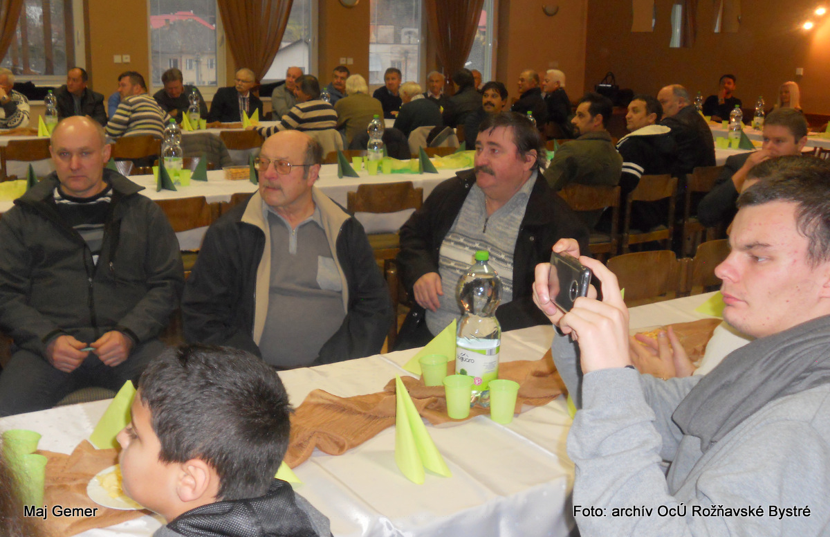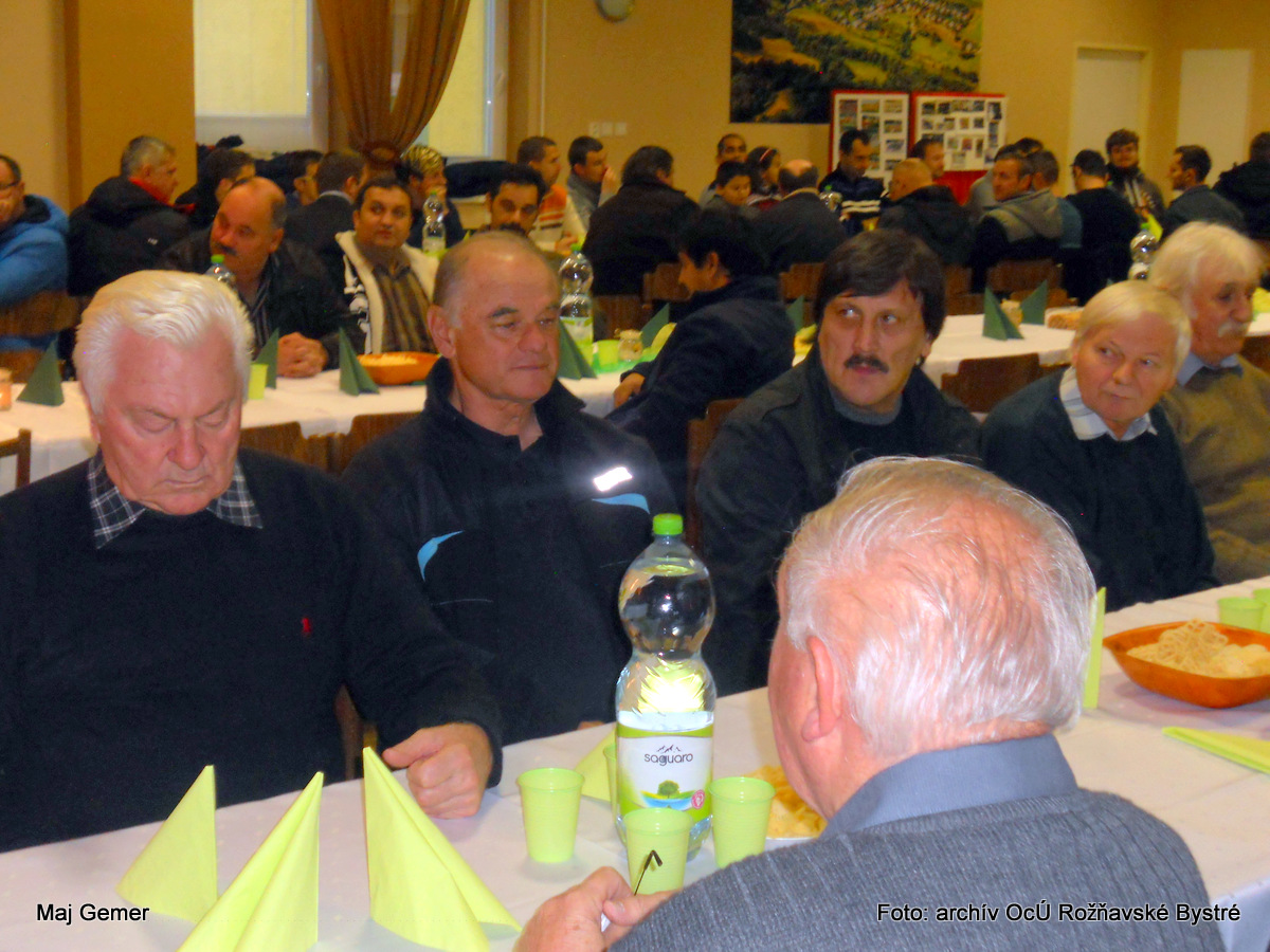 Po odovzdaní pamätných listov, príhovoroch a krásnych spomienkach nasledovala slávnostná večera, pripravená našimi skvelými kuchárkami pod vedením Moniky Urbanovej. O dobrú a rýchlu obsluhu sa postarali členovia súboru Bystränky. O občerstvenie sa vzorovo starali poslankyne obecného zastupiteľstva pod dohľadom našej gazdinej Mirky Kaššaiovej a Jána Gonosa. Všetci zúčastnení dostali nástenný kalendár od našej obce.