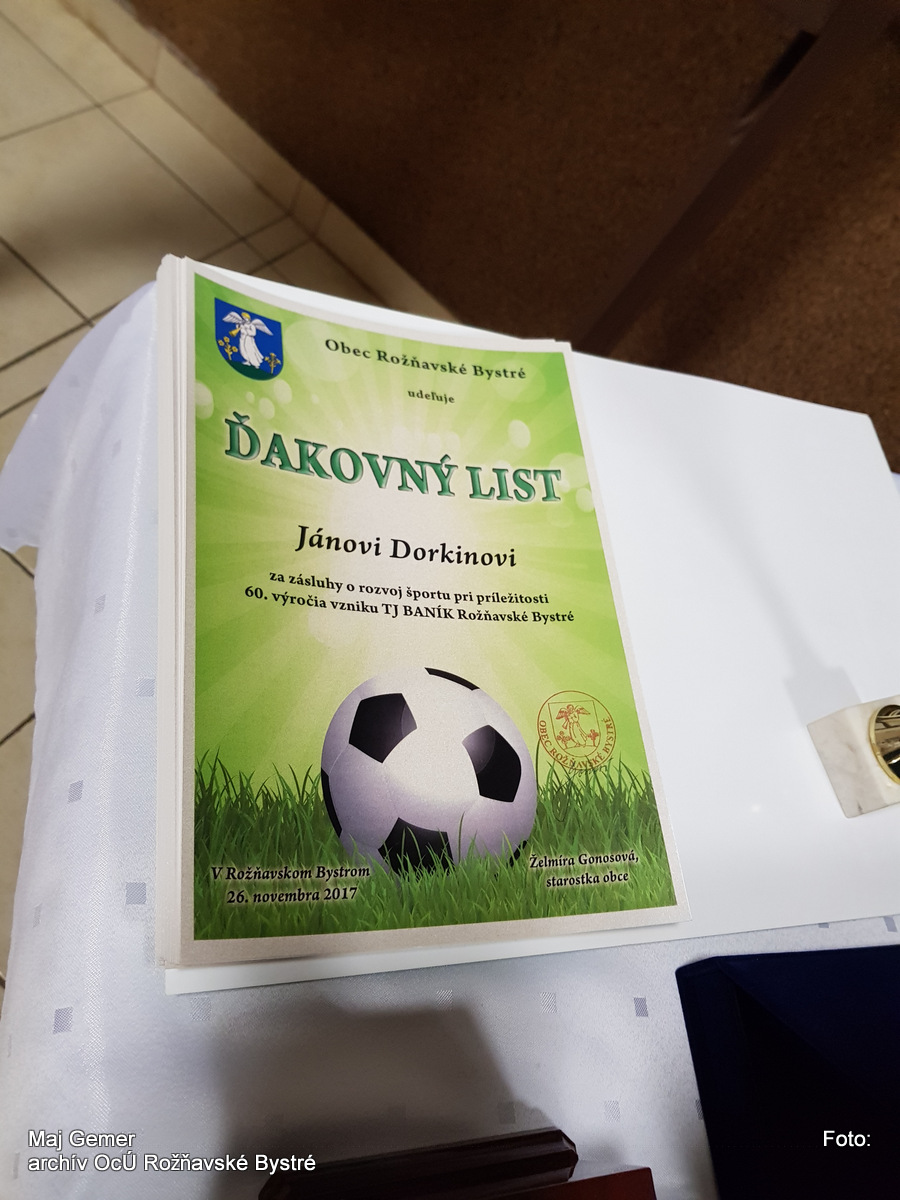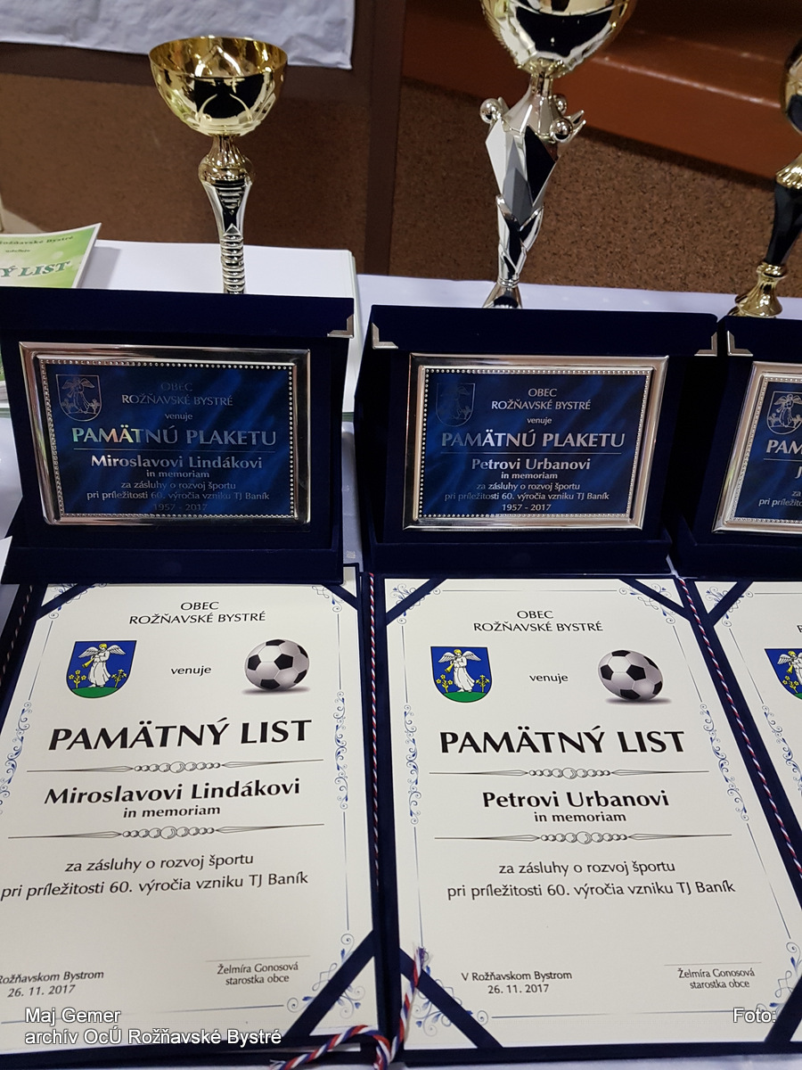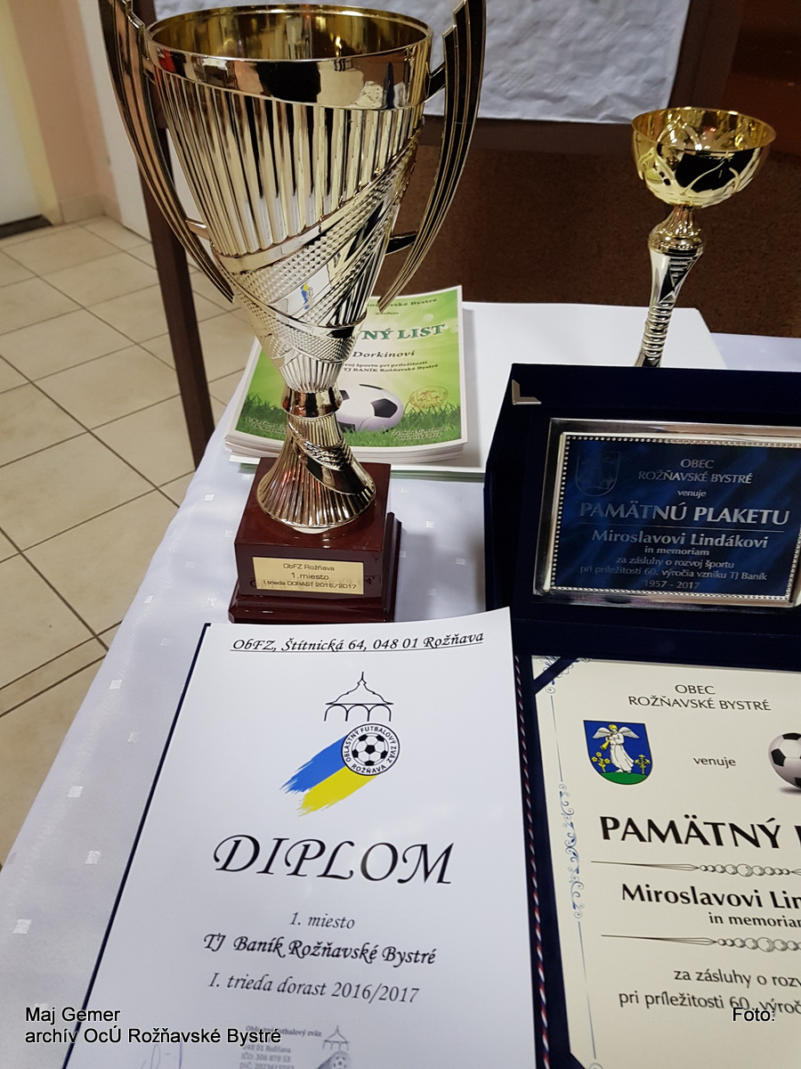 Po tomto akte starostka obce odovzdávala pamätné listy bývalým futbalistom. Na záver oficiálnej časti bol kapitánovi dorastencov Filipovi Znakovi odovzdaný pohár za víťazstvo v okresnej súťaži. Za ObFZ sa slávnosti nezúčastnil nikto. Na to, aby chlapcom neodovzdali spomínaný pohár za prvé miesto dorastencov v okresnej súťaži za rok 2016/17 našli si vždy nejaké dôvody.