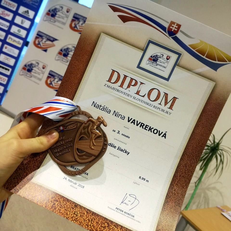 S radosťou môžeme konštatovať, že Nina Natália Vavreková vybojovala vo svojej disciplíne bronzovú medailu výkonom 8,99 m a hoci to po práve prekonanej viróze nebolo zďaleka jej maximum, predsa to stačilo na zaradenie revúckej atletiky na medailovú mapu.